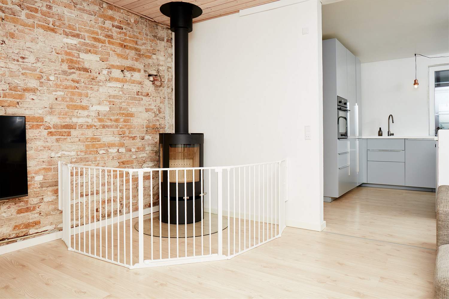 - Flex XL besteht aus einem zu öffnenden Tor (72 cm), zwei 72 cm breiten Paneelen, zwei 33 cm-Paneele und Wandhalterungen.