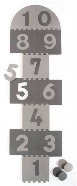 Die Spielmatte kann auch als Puzzle verwendet werden, da die Teile der Matte leicht unterschiedlich sind und auf eine bestimmte Weise zusammenpassen. Sie können die Zahlen auch entfernen und Ihr Kind die Löcher in den Kacheln finden und der richtigen Zahl zuordnen lassen – eine weitere unterhaltsame Möglichkeit, die Zahlen 1–10 zu üben.