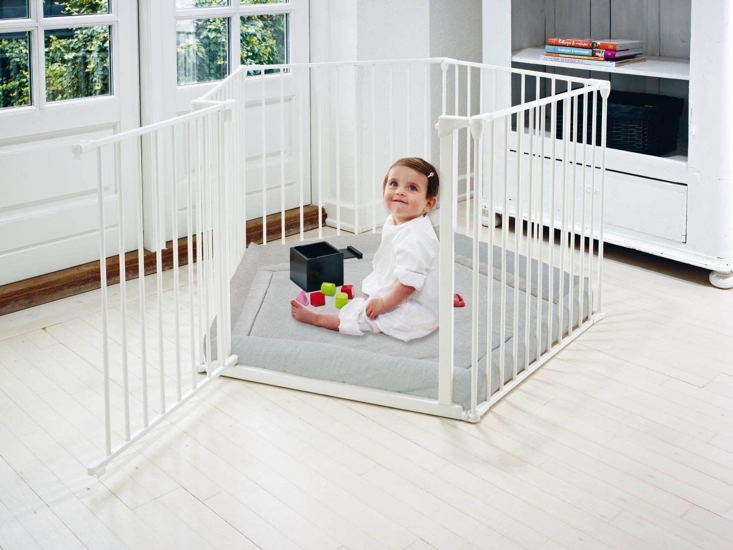 Baby Dan Park A Kid ist ein praktischer, sehr einfach zu bedienender Laufstall für Kinder. Er verfügt über eine außergewöhnlich breite Tür, die das Herausnehmen des Kindes ohne Bücken erleichtert. Wenn der Laufstall nicht mehr benötigt wird, lässt er sich ganz einfach in ein Sicherheitstor umwandeln, um breite Durchgänge, einen Kamin oder Treppen abzusichern.