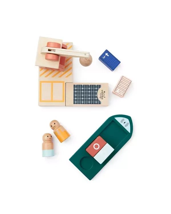 Im Lieferumfang enthalten ist das Schiff, der Hafenbereich in zwei Teilen, der Kran inklusive, 4 Container mit Magneten und 2 Personen. Der Kran ist um 360 Grad drehbar. Der Solarpanelbereich ist abnehmbar. Svea und Bernie haben ihr Ziel erreicht, zwei emissionsfreie Unternehmen mit einem völlig fossilfreien Containerschiff und einem solarbetriebenen Containerhafen aufzubauen – und das bereits im Jahr 2023! Durch die Erfindung des weltweit ersten induktionsgeladenen Containerschiffs und des effizientesten Solarpanels aller Zeiten können sie nun sowohl Spielzeug als auch andere Kinderartikel rund um die Welt verschicken, ohne Emissionen und mit Solarenergie aufgeladen zu werden.