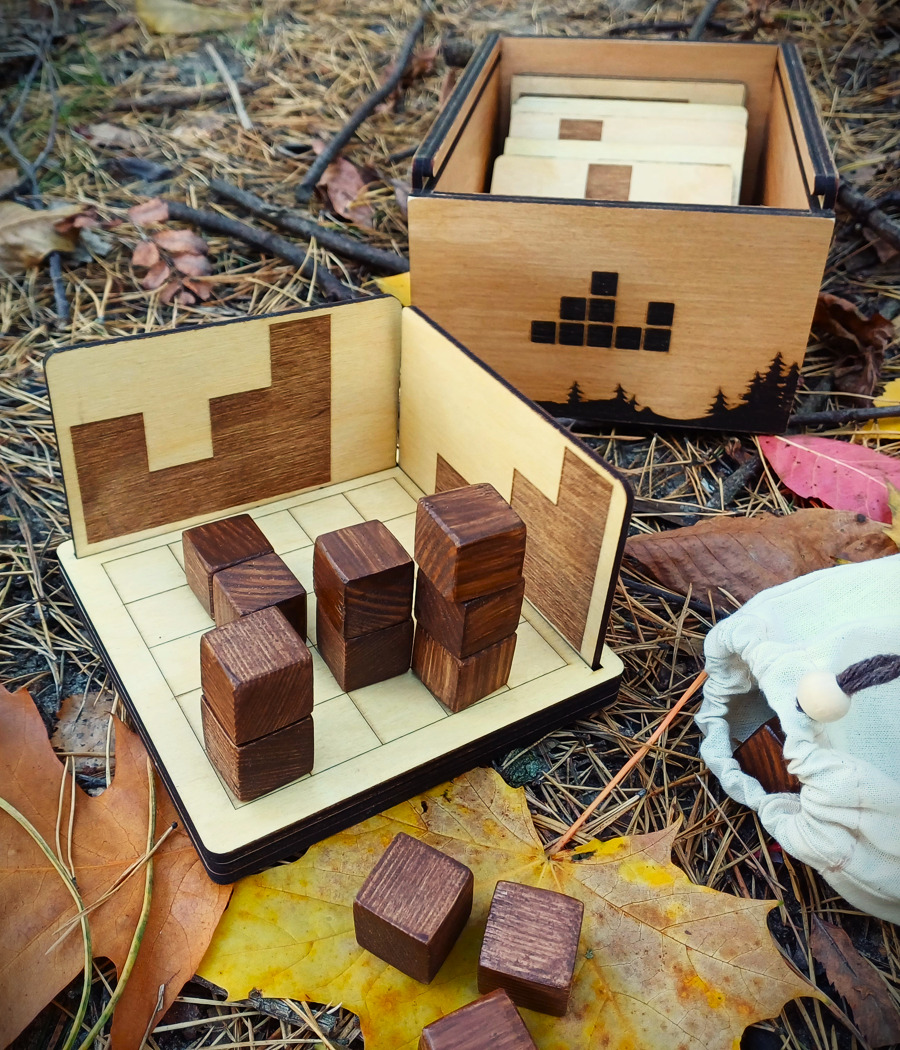 Dieses einzigartige Spiel ist eine hervorragende Wahl für angehende Ingenieure. Das Schattenspiel bringt Kindern die Grundlagen der technischen Zeichnung durch das Werfen von Schatten bei. Ziel ist es, die Bauklötze so anzuordnen, dass die Figur einen Schatten wirft, der mit dem ausgewählten Muster auf der Karte übereinstimmt. Muster können kombiniert werden, und jede Aufgabe hat mehrere Lösungen, was Kreativität und räumliches Vorstellungsvermögen fördert. In der Anleitung sind verschiedene Spielvarianten beschrieben. Mit einer Taschenlampe kann das Verständnis für Schatten und räumliche Anordnung noch besser gefördert werden.
