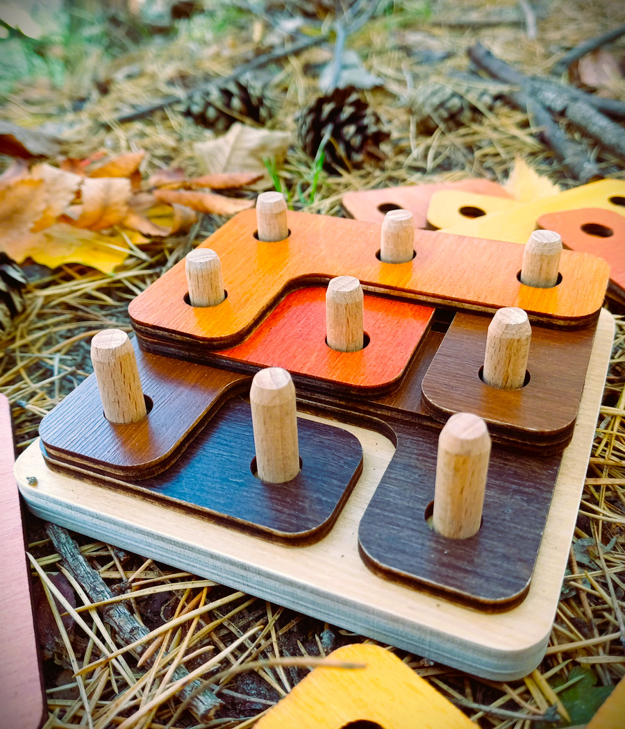 Stapeln, Sortieren und Auffädeln sind wichtige motorische Fähigkeiten, die jedes Vorschulkind entwickeln sollte. Präzise Bewegungen von Händen, Fingern und Handgelenken spielen eine entscheidende Rolle im Alltag und bilden die Grundlage für das Schreibenlernen. Der geometrische Turm hilft Kindern, diese Fertigkeiten zu trainieren, indem sie Klötze auf einem Holzbrett arrangieren. Sie können nach Farben, Formen oder nach eigenen Ideen geordnet werden. Dieses Spielzeug fördert Kreativität, Koordination und die Farberkennung.