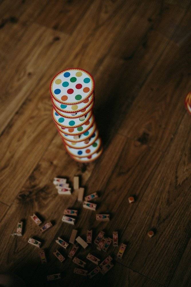 Das Ziel des Spiels ist es, einen möglichst hohen Turm zu bauen. Der Spieler, der es zu Fall bringt, verliert.