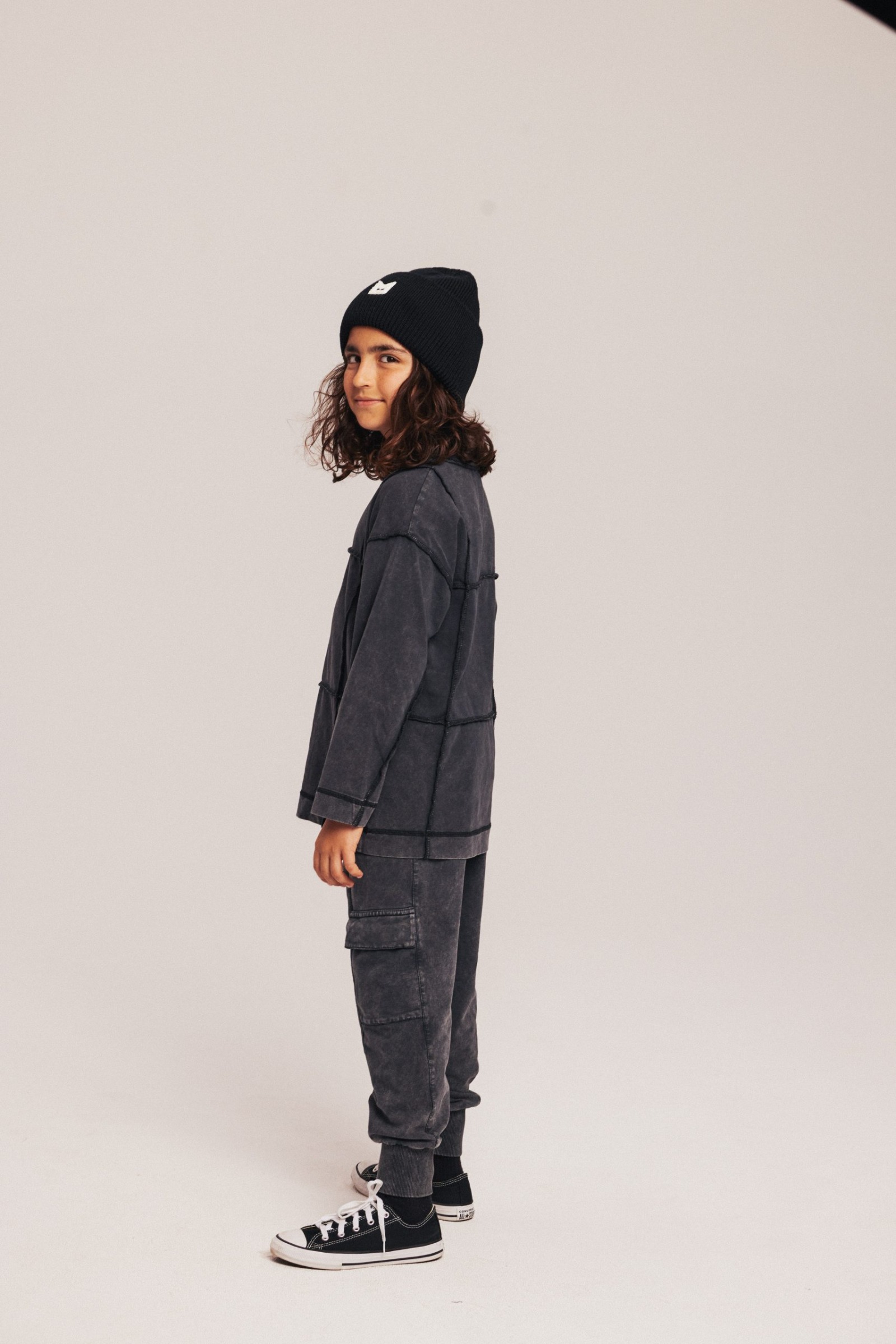 Cargo Pants sind eines der Highlights der Herbst-Winter-Kollektion 2023! Wir verstehen absolut, warum – ein super bequemer Schnitt mit geräumigen Seitentaschen, Kordelzug und Bündchen an den Knöcheln. In Vintage Black ist es ein unverzichtbares Stück in der Herbstgarderobe jedes MINIKID. Dank der Wäsche ist jedes Stück einzigartig und außergewöhnlich, mit einem weichen und angenehmen Griff.