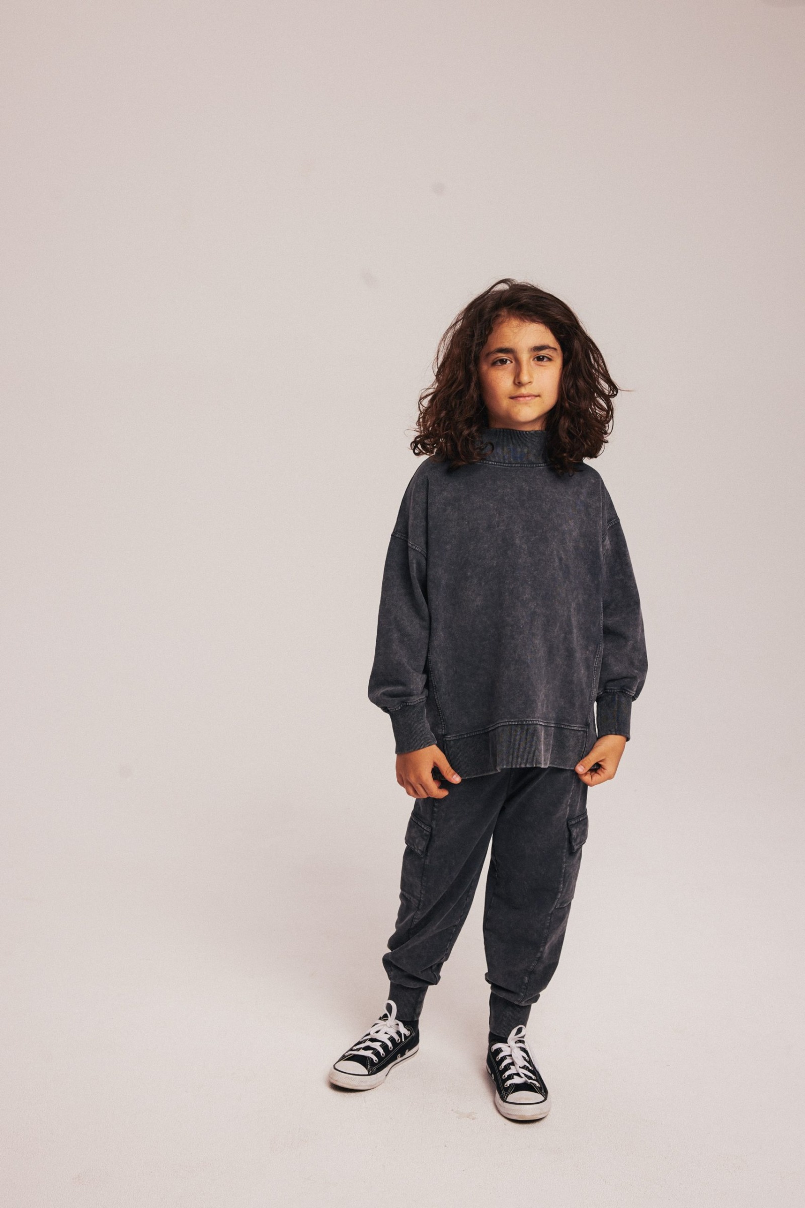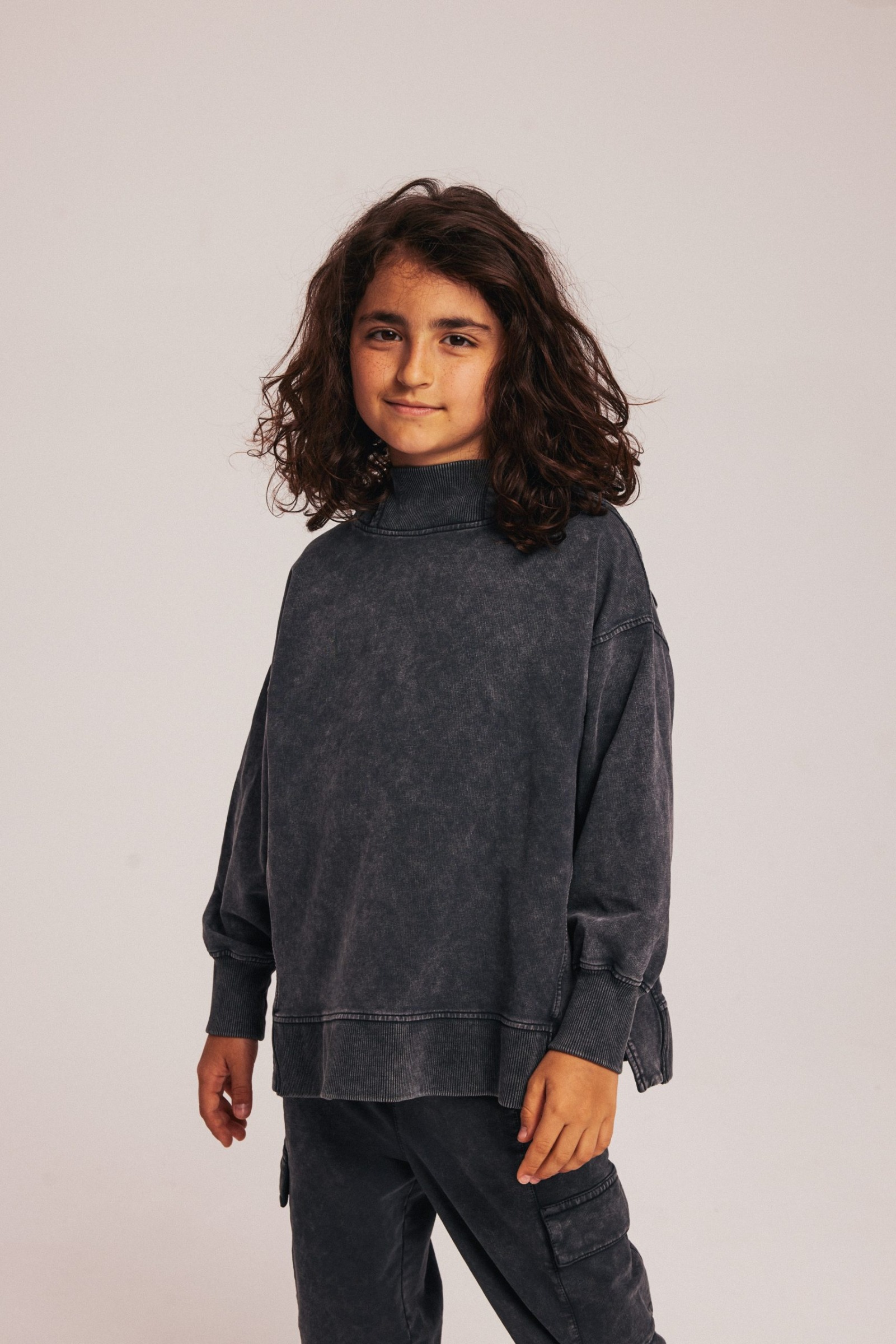Ein Schnitt, der eure Herzen im Sturm erobert hat, diesmal in Vintage Black. Leicht, locker und ultrabequem. Das originelle Design mit Nähten und Rippbündchen sorgt für eine tolle Passform. Durch das Waschen erhält jedes Stück einen einzigartigen Vintage-Effekt, und der Pullover ist weich und angenehm.