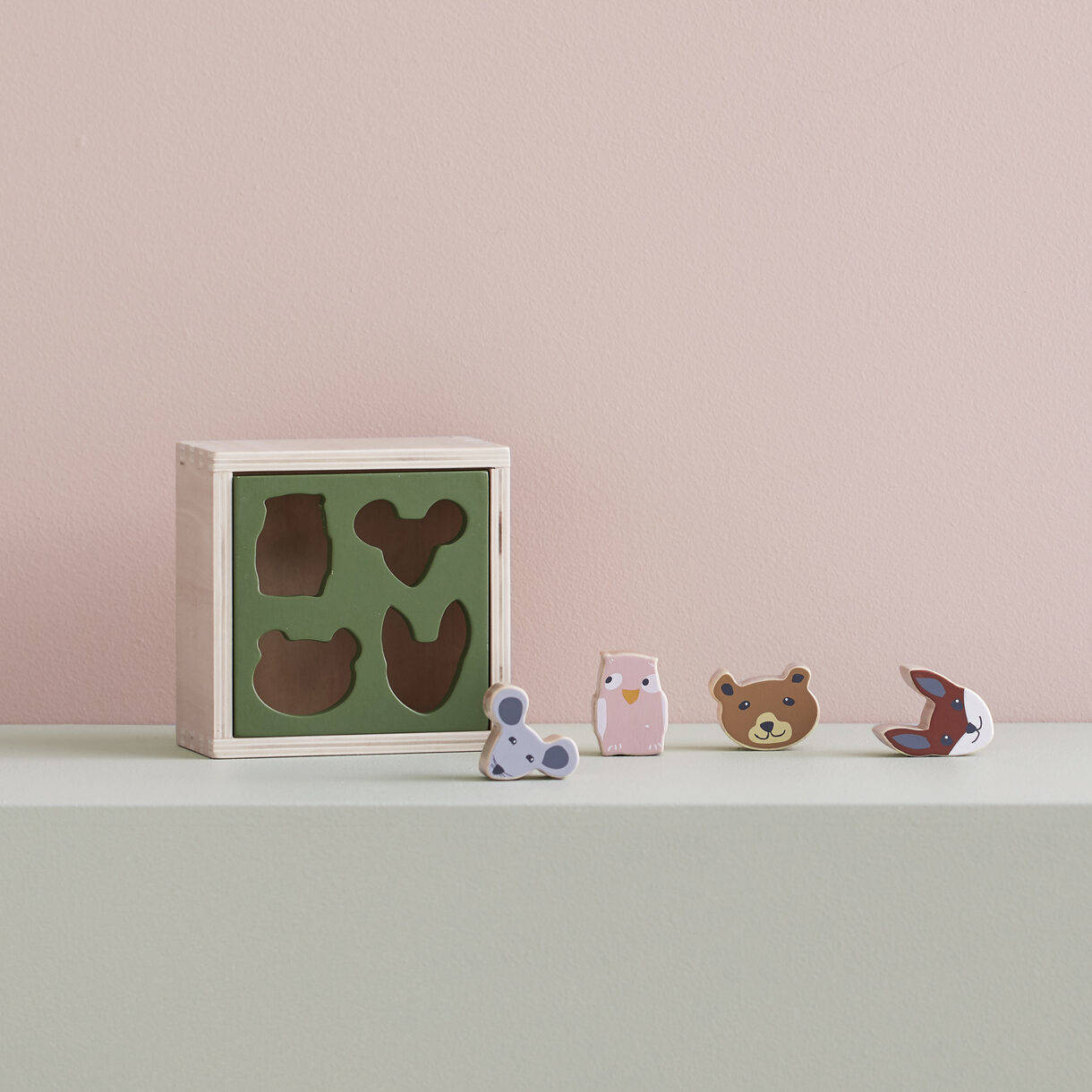 Max der Bär, Tor die Maus, Ed der Fuchs und Ola die Eule sind fertig und wartet darauf, in den Würfel gelegt zu werden. Der Formsortierwürfel fördert die Feinmotorik und Koordination. Sobald Ihr Kind alle Blöcke in den Würfel gelegt hat, können Sie einfach den Deckel öffnen und von vorne beginnen. Aus Sperrholz und Gummiholz.