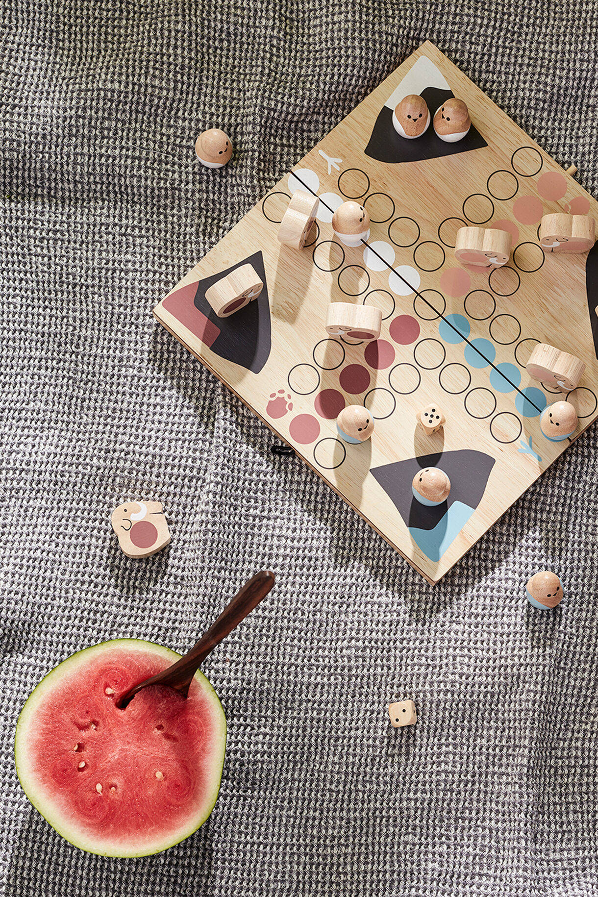 Im Ludo-Spiel NEO Sie wählen zwischen vier verschiedenen Holzfiguren aus dem NEO-Konzept. Das Brett lässt sich in der Mitte zusammenfalten und bildet eine Aufbewahrungsbox für die Teile. Anweisungen sind ebenfalls enthalten.