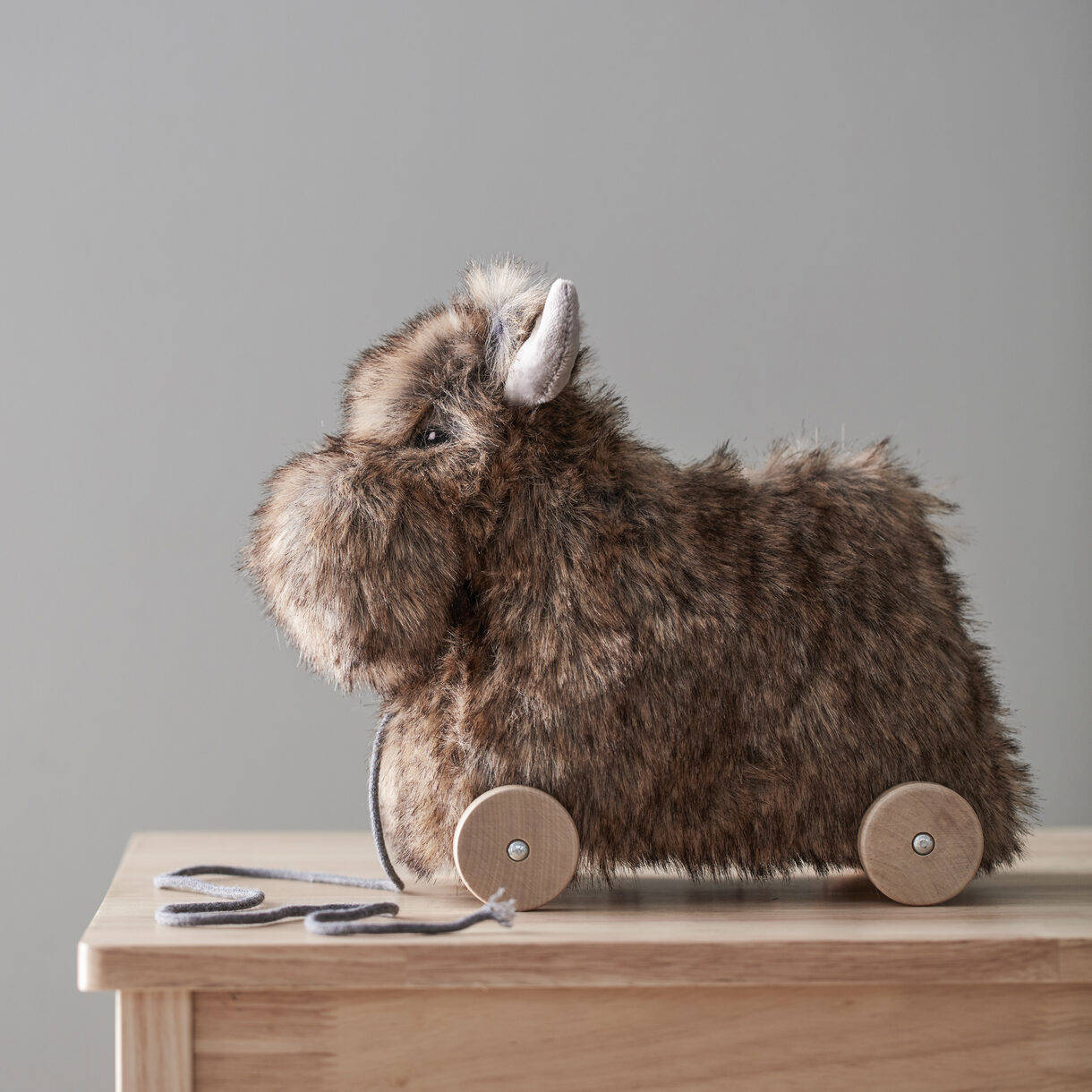Nehmen Sie unseren Lieblingselch Bo mit auf eine spannende Reise durch das Haus oder auf die Terrasse. Möglicherweise hören Sie einige interessante Geräusche oder brauchen einfach nur einen guten Freund auf der Reise. Wenn es Zeit ist, Ihre Beine auszuruhen, ist er immer zum Kuscheln oder Spielen zu haben. Bo, das Nachziehtier, lädt zum Streicheln ein, fördert die Bewegung und hilft bei der Entwicklung der Grobmotorik.