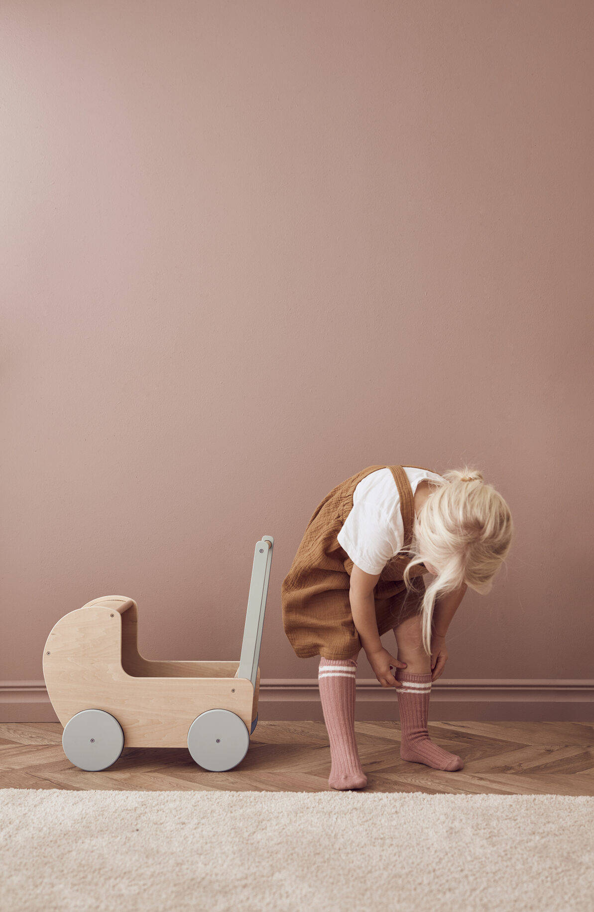 - Material: Puppenwagen: Sperrholz, Buche. Griff: Kiefer, Schima. Räder: MDF. Stoff: Baumwolle. Kissenfüllung: Polyester.