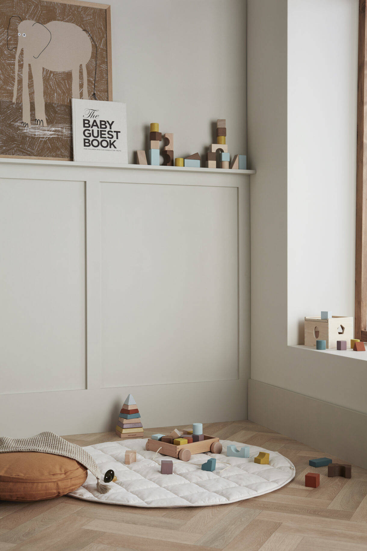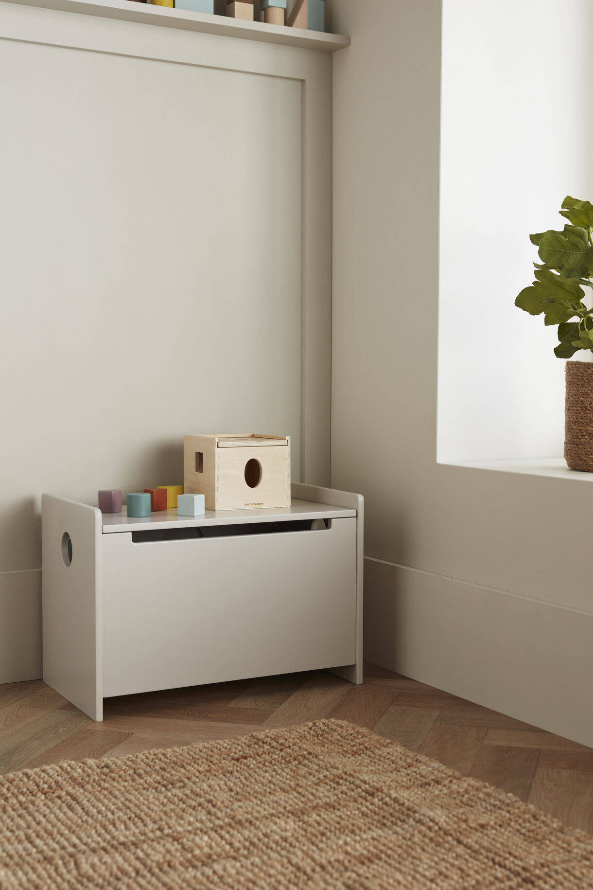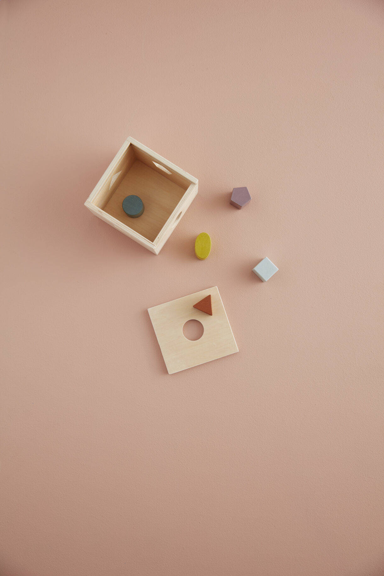 Wenn Ihr Kind es geschafft hat, alle Bausteine in die Box zu legen, öffnen Sie den Schiebedeckel, drehen Sie die Box um und leeren Sie sie. Jetzt können Sie von vorne beginnen, der Spaß wird nicht so schnell enden.