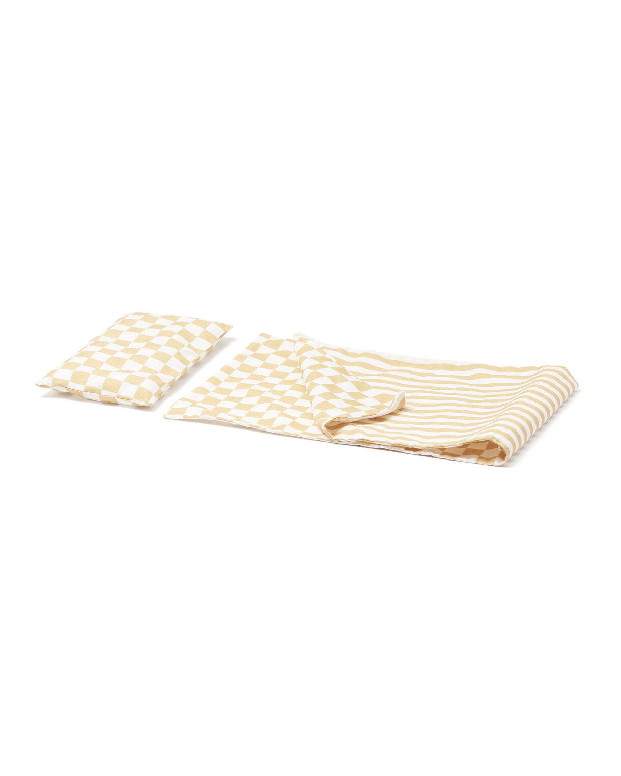 Das Bettset mit beidseitig bedrucktem Muster, in dem sich das Laken und die Bettdecke befinden zusammengefügt und mit einem Kissen ausgestattet, ist aus Baumwolle. Das Streifen- und Karomuster ist vom Leben von Carl und Karin Larsson und ihrer Art, ihr Zuhause zu färben, inspiriert, wo die karierten und gestreiften Muster häufig als Grundmuster verwendet werden. Die kleine vierblättrige Kleeblattrille ist von Wandmalereien und Mustern in ihrem Zuhause inspiriert. Beide verfügen über die gleiche Bettwäsche in einem gedämpften, neutralen Gelbton. Das Bettwäscheset hat auf jeder Seite ein anderes Muster – ein Quadrat- und ein Streifenmuster, die in Kombination einen schönen Effekt erzielen. Carl und Karin Larsson; Das vierblättrige Kleeblatt ist eine beliebte Dekoration an Wänden und Möbeln bei Lilla Hyttnäs. Es gibt sogar ein besonderes Wandgemälde, auf dem vier der Kinder in genau einem vierblättrigen Kleeblatt abgebildet sind. Es gefällt uns so gut, dass wir beschlossen haben, es zum Markenzeichen der gesamten Kollektion zu machen, und jeder weiß, dass das vierblättrige Kleeblatt seinem Besitzer Glück bringt! Lotta Hallenius, unsere Designerin; Das vierblättrige Kleeblatt ist eine Form, die ich in vielen Details rund um ihr Zuhause gesehen habe, wie Wandgemälden und gestickten Details. So wurde diese Form zum grafischen Symbol für unsere Carl Larsson-Kollektion. Es kann als Symbol für die Familie mit Kindern dienen – egal wie die Familie aussieht.