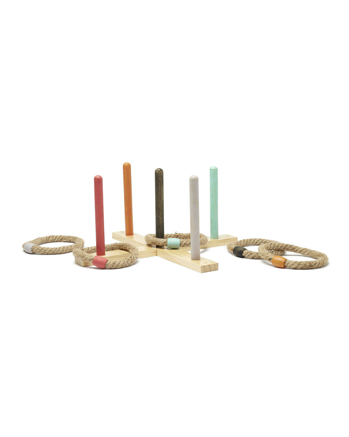 Traditionelles Ringwurfspiel aus Holz, geeignet für Kinder ab drei Jahren.