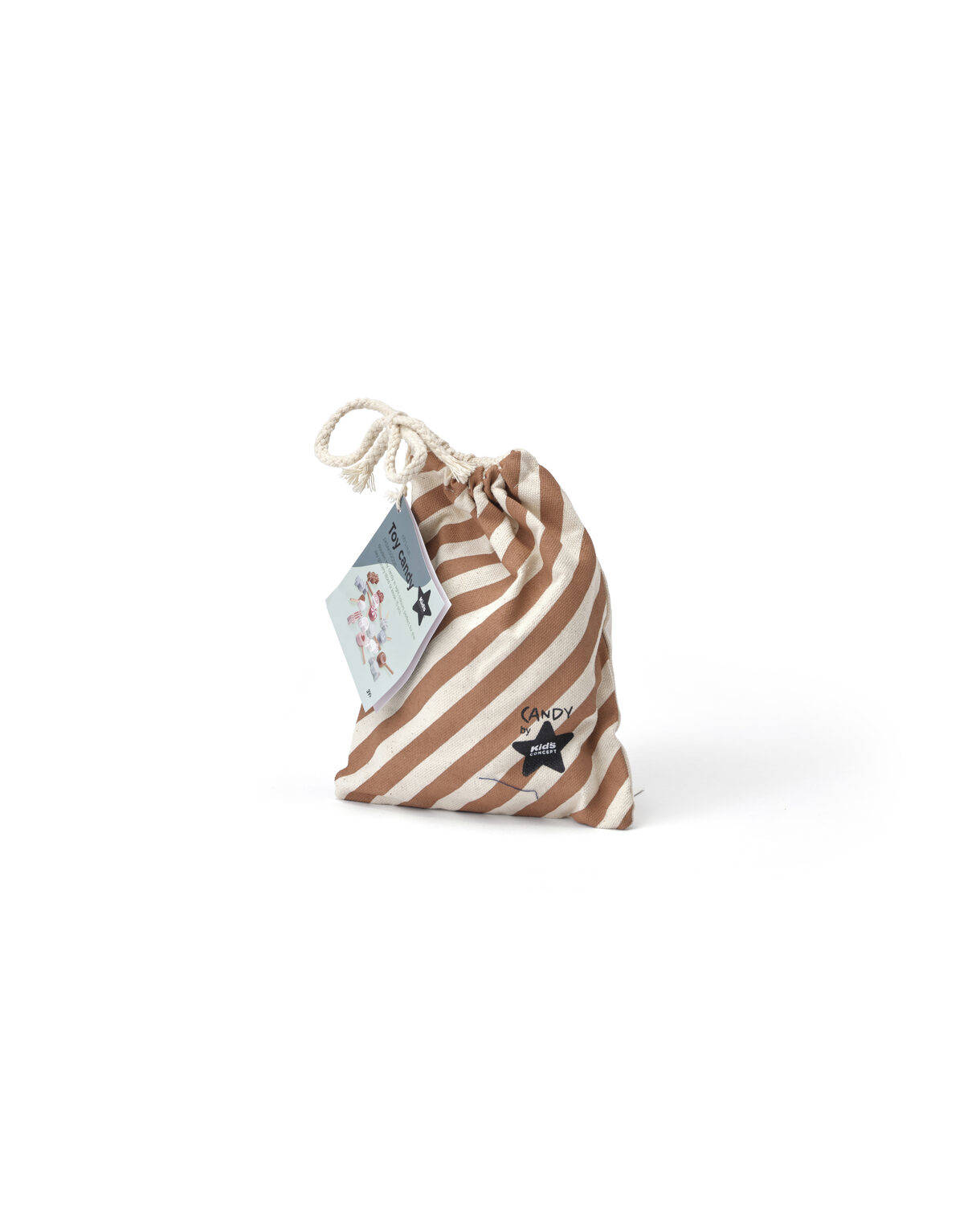 Spielbonbons aus Holz. Das Set enthält 15 Bonbons und eine Aufbewahrungstasche mit den Maßen 15 x 20 cm.