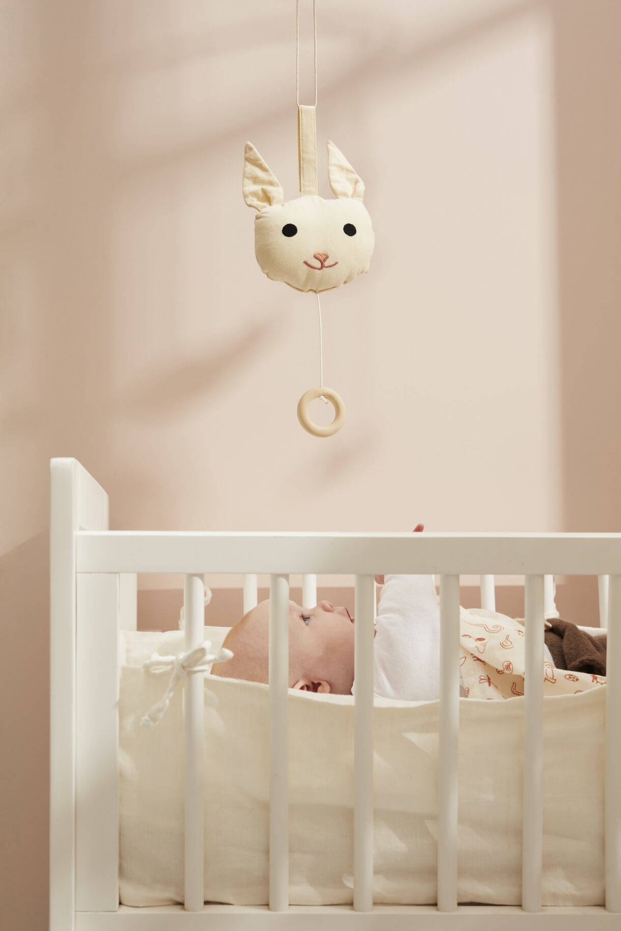 Ziehen Sie am Holzring und Lu, der Hase, ist bereit, eine beruhigende Melodie für Ihr Baby zu spielen. Es kann dem Baby ein Gefühl der Sicherheit geben, wenn dieselbe Melodie gespielt wird. Klettverschlüsse zum Aufhängen erleichtern das Bewegen. Halten Sie Ihren Kleinen beim Windelwechseln bei Laune. Hängen Sie es in den Kinderwagen oder neben den Autositz. Mit einem feuchten Tuch reinigen oder den Stoff abstauben. Da die Spieluhr mechanische Teile enthält, kann sie nicht in der Waschmaschine gewaschen oder eingeweicht werden.