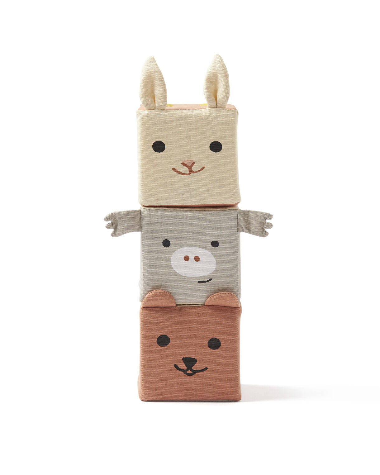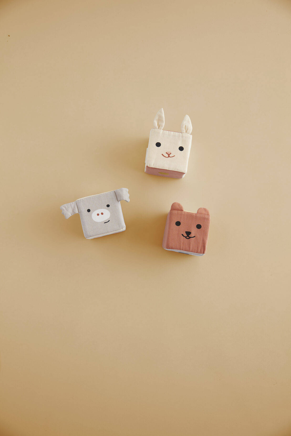 Ein Set aus drei großen, weichen Blöcken mit Tieren aus strapazierfähiger Öko-Baumwolle.