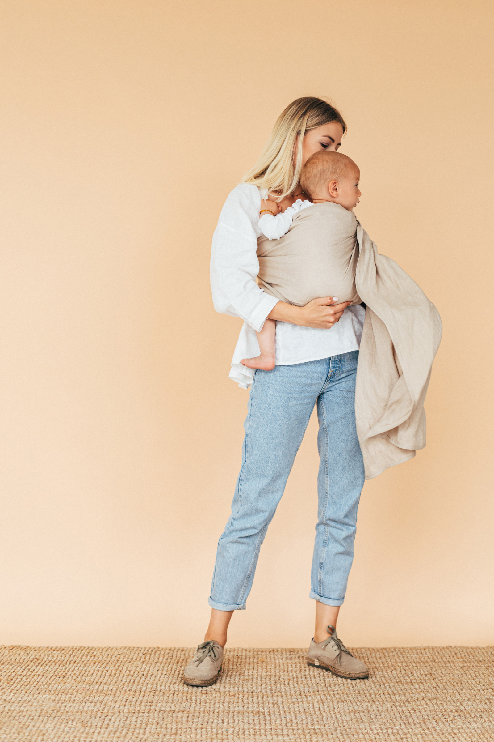 100% Leinen Ringsling in natürlicher Leinenfarbe. Wenn Sie natürliche Töne lieben, ist diese Trage für Sie perfekt! Der beigefarbene Sling ist ein Favorit unter Müttern :)