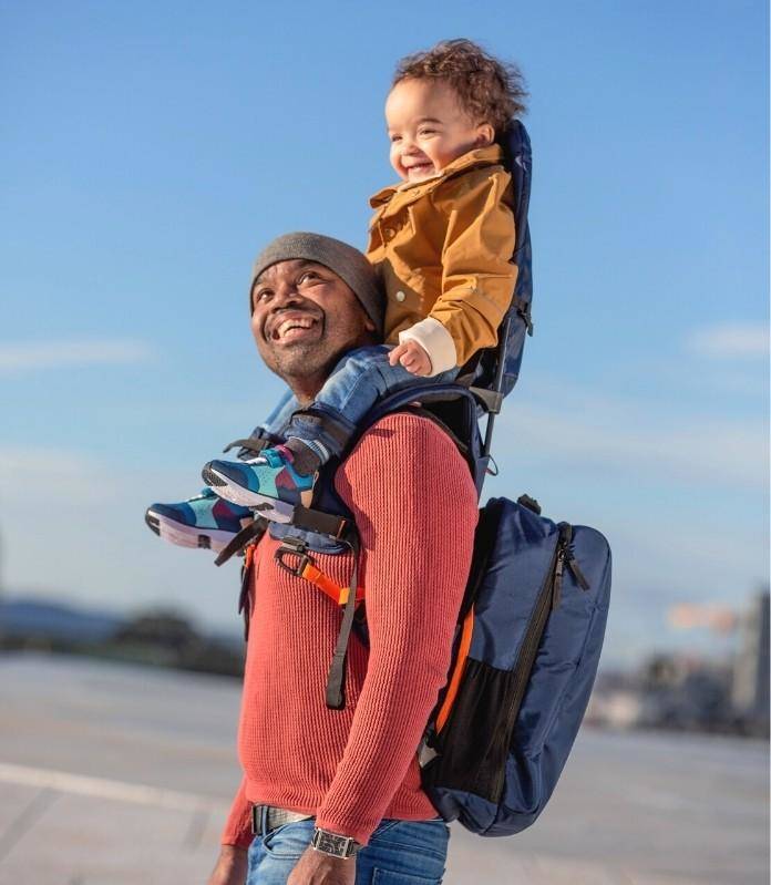 Bequemer Zugriff beim VerlassenUm schnell an die Gegenstände im Rucksack zu gelangen, lösen Sie einen der Riemen vom Haken, stellen Sie den Rucksack vor sich hin und greifen Sie bequem nach dem, was Sie brauchen , z.B. Wasser- oder Cocktailflaschen in den Taschen sind so gestaltet, dass sie auf die Notwendigkeit einer ausreichenden Flüssigkeitszufuhr achten und Eltern und Kind in guter Form halten.