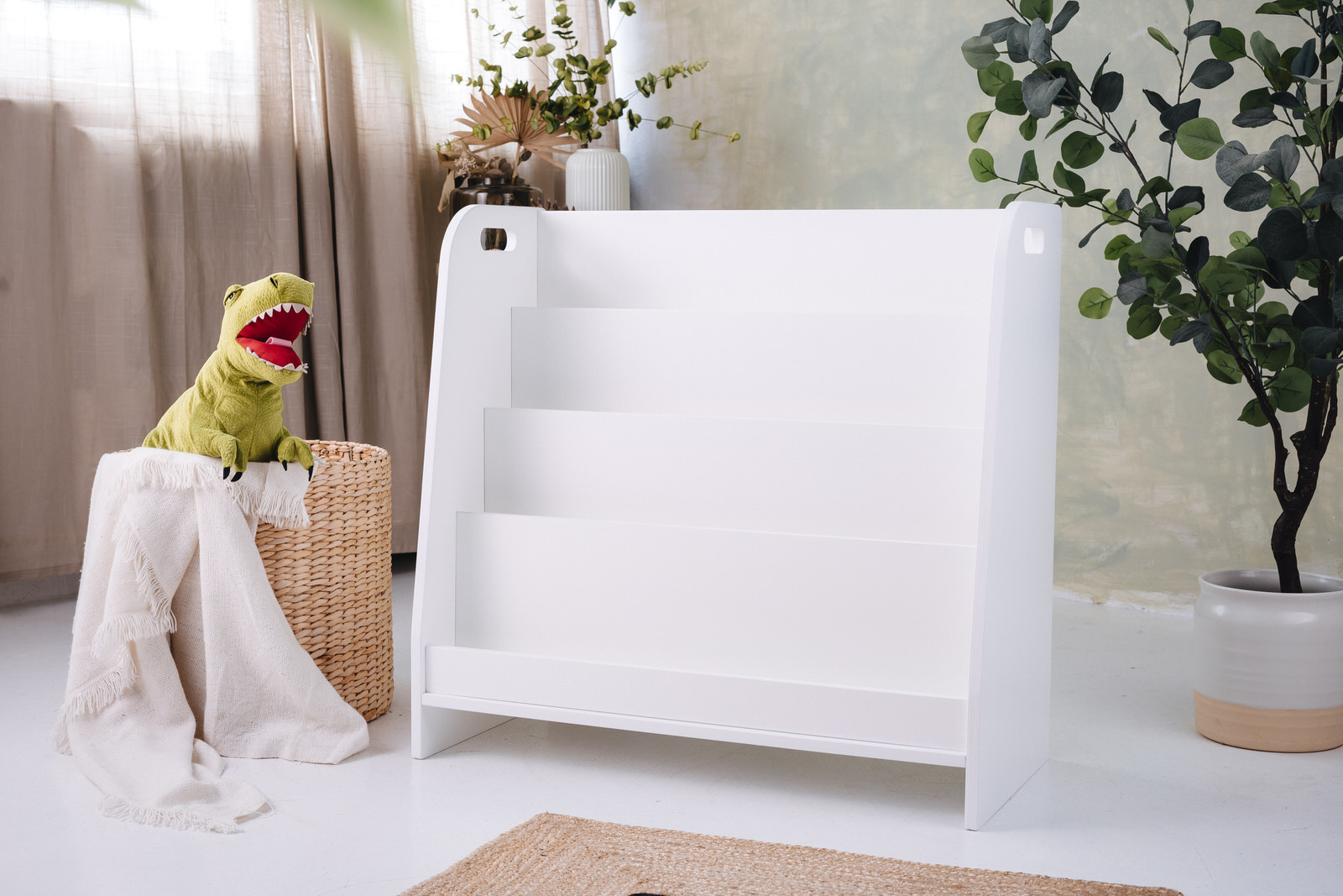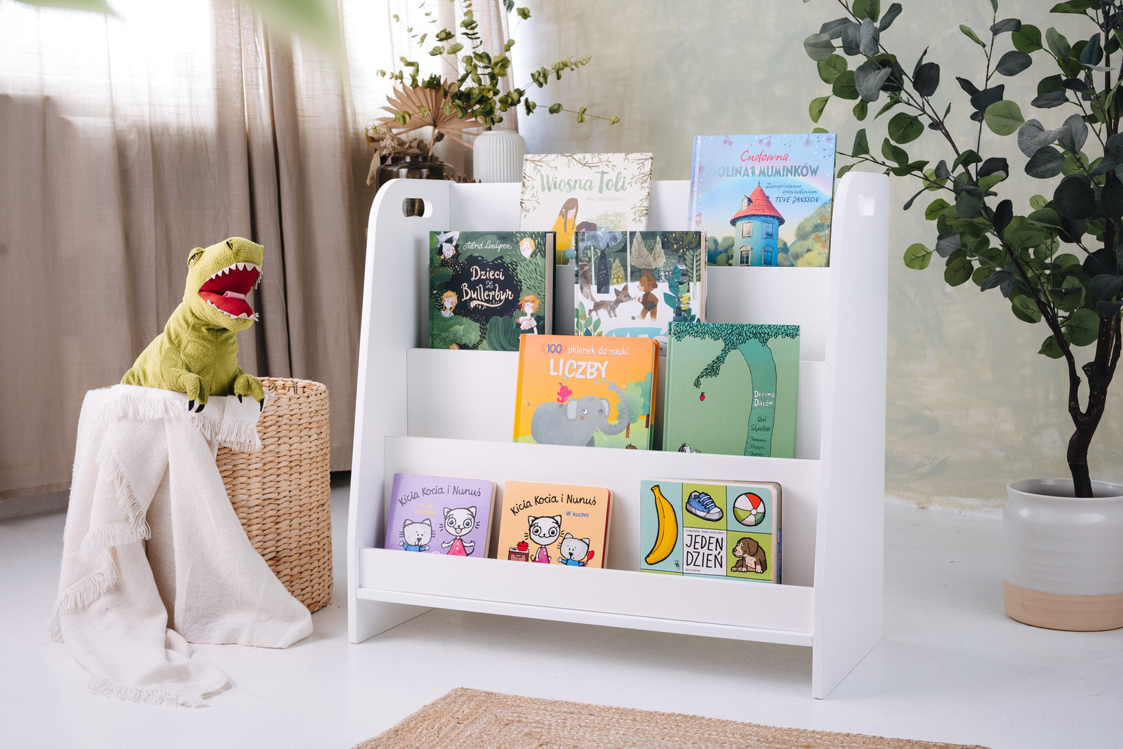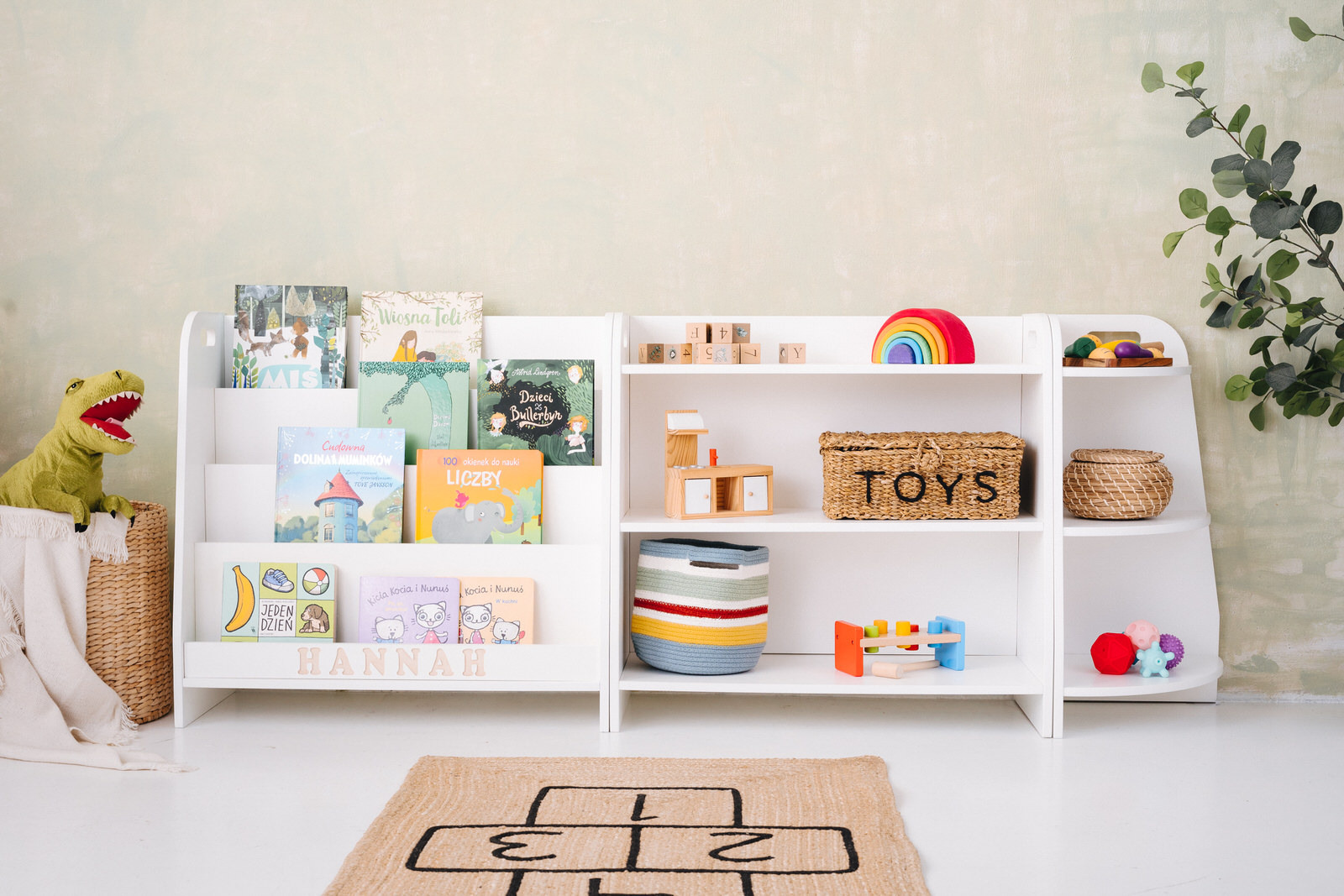 Ein Kinderbücherregal in Form eines offenen und transparenten Bücherregals ist die perfekte Wahl für Liebhaber von Harmonie und Einfachheit in der Inneneinrichtung. Gemäß den Grundsätzen der Montessori-Methode ist dieses Möbelstück darauf ausgelegt, die Entwicklung eines Kindes zu unterstützen. Schon die Art und Weise, wie Bücher mit ihren Covern nach vorne ausgerichtet sind, ermöglicht jungen Lesern eine sorgfältige Auswahl ihrer Lektüre. Der volle Zugang zu den Regalen und Taschen auf Bodenhöhe erleichtert nicht nur das Erreichen des ausgewählten Buches, sondern ermutigt auch dazu, es wieder an seinen Platz zu stellen, was Selbstdisziplin und Sorge um den eigenen Raum lehrt.