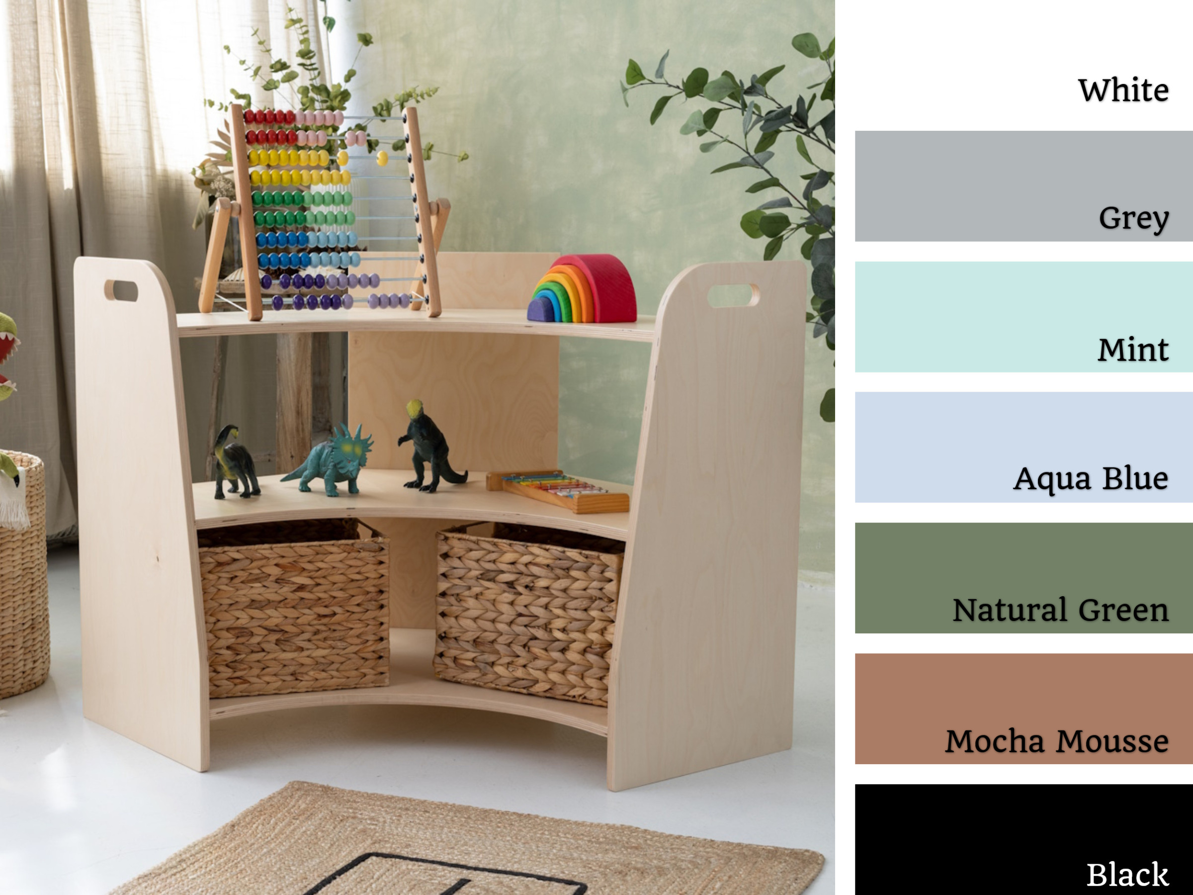 Bei der Auswahl eines Spielzeugregals für das Kinderzimmer schaffen Sie einen Raum, der die Entwicklung Ihres Kindes unterstützt. Vorschulkinder machen gerne von gut gestalteten Möbeln Gebrauch, aus denen sie Spielzeug oder Werkzeuge nehmen und in ihren Aktionsbereich transportieren, nur um sie später wieder zurückzulegen. Beobachten Sie den Entscheidungsprozess des Kindes. Wenn Sie diese Fähigkeit unterstützen, wird sie zu einer sehr wichtigen Eigenschaft im Erwachsenenleben.