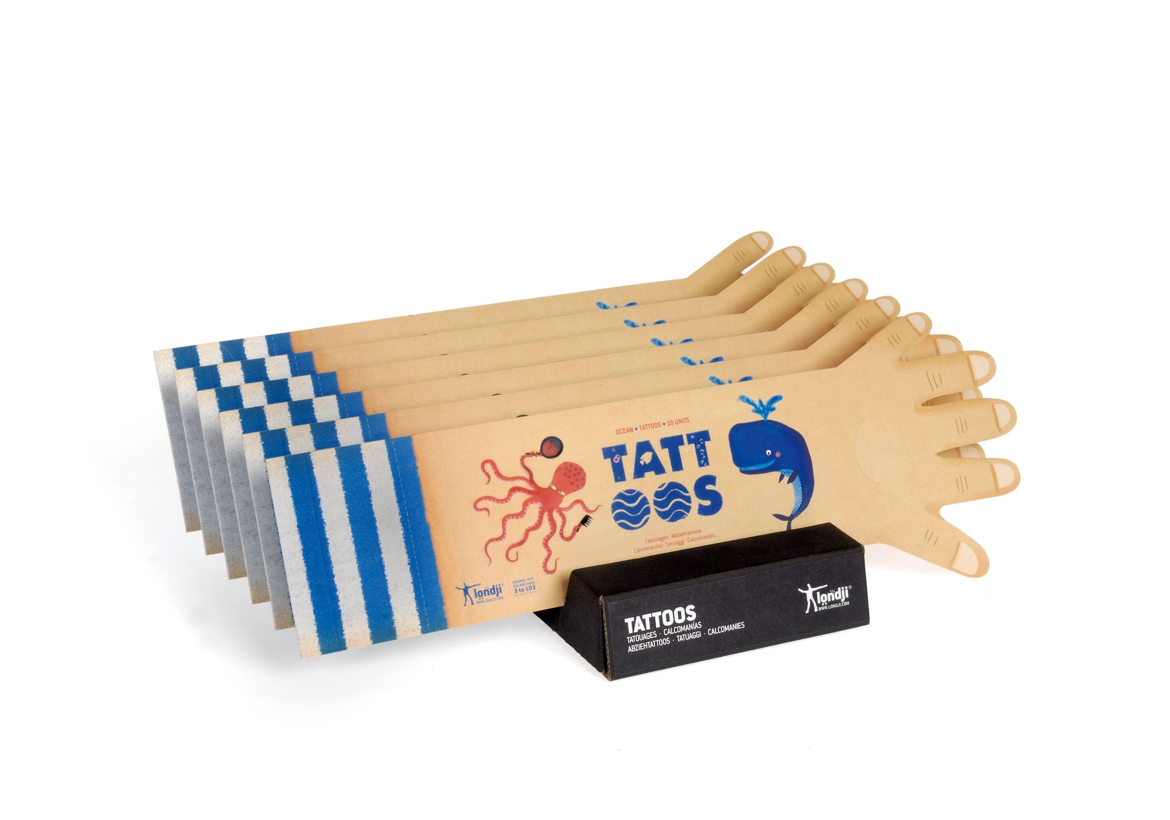 Verzieren Sie Ihren Körper mit diesen zehn temporären Kindertattoos von Meerestieren und Meereskreaturen. Ein ideales Geschenk. Das Set enthält 10 einzigartige Tattoos.