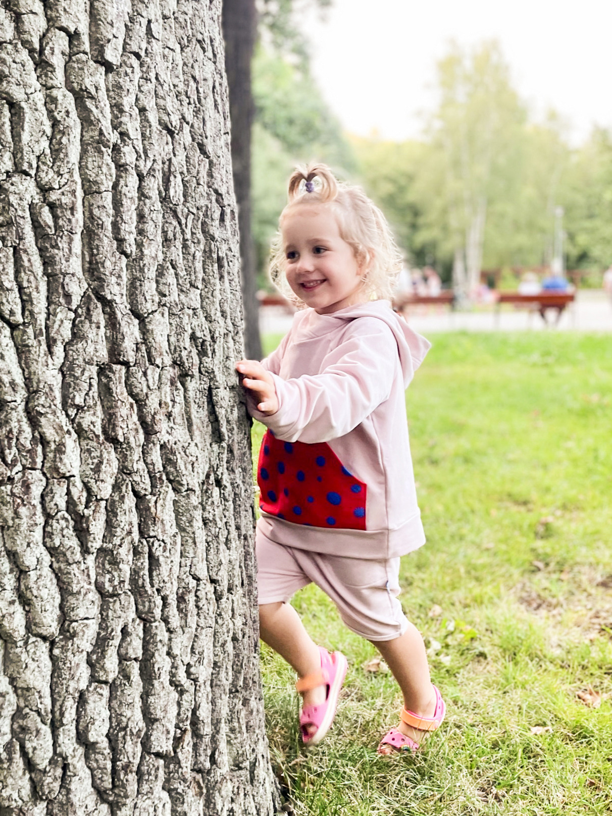 Rosa Kapuzenpulli mit Känguru-Tupfen