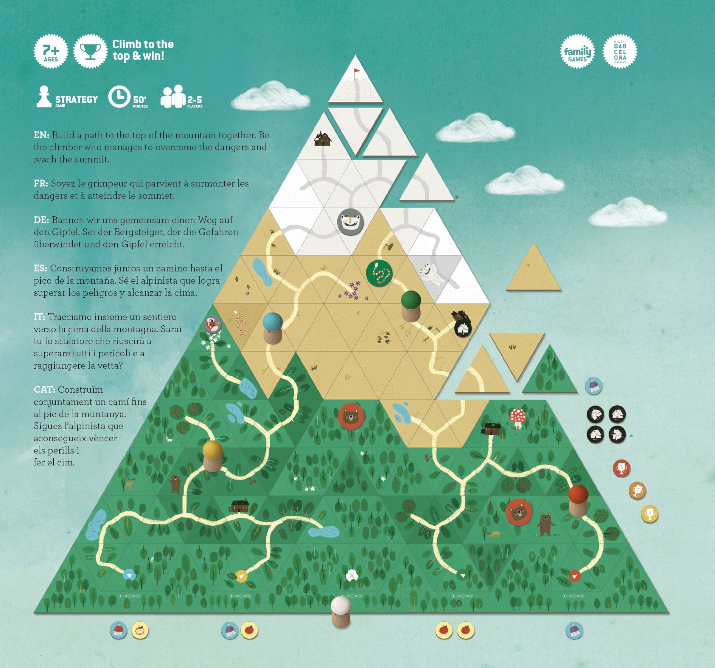 Das Ziel ist es, als erster Spieler den Gipfel zu erreichen. Der Würfel gibt an, wie viele Teile dem Berg hinzugefügt werden können, wie viele Felder der Kletterer vorrücken kann und ob einige der gefährlichen Tiere, die in dem Berg leben, aktiviert werden. Um zum Gipfel zu gelangen, müssen wir Vorräte und Ruheplätze finden, um unsere Energie wieder aufzufüllen!