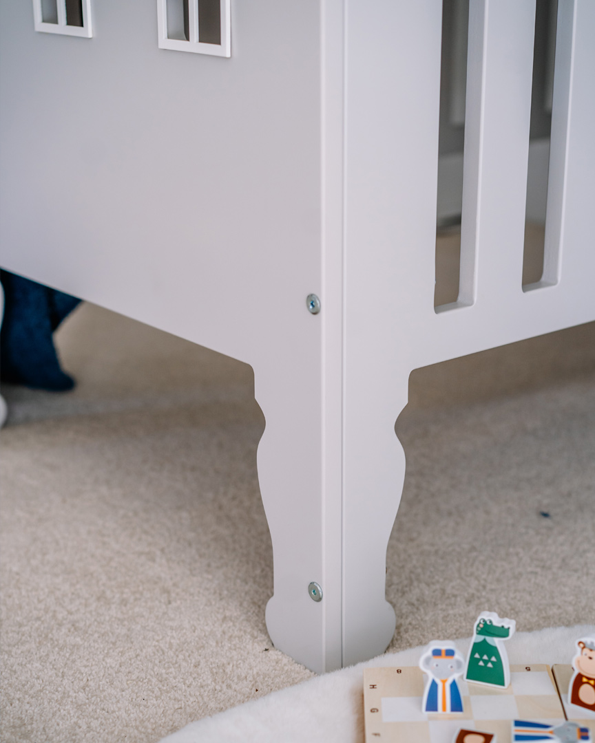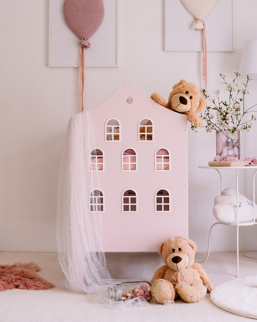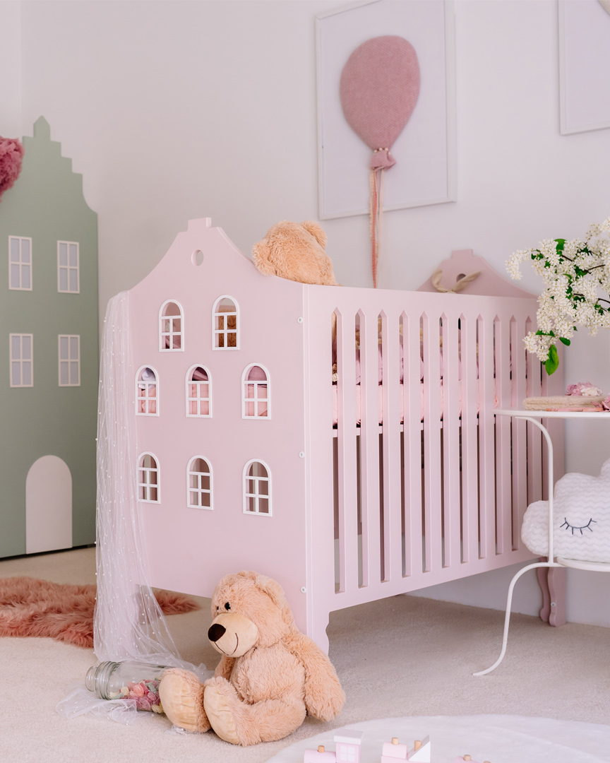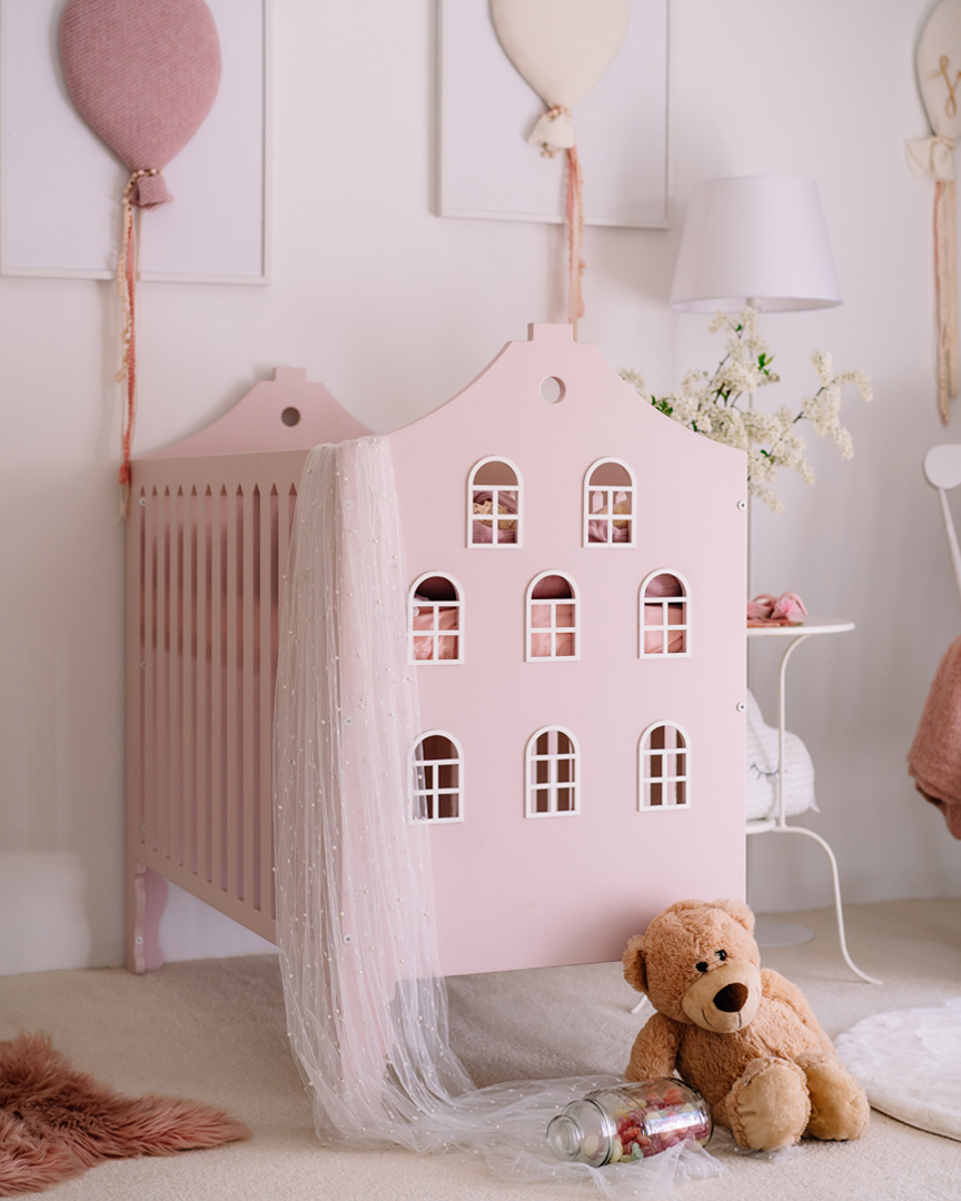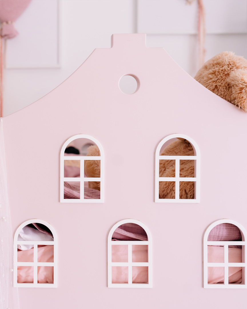 Dieses schöne Kinderbett in Hausform, hergestellt aus umweltfreundlichem MDF und sicherem Kiefernholz, bietet drei verstellbare Höhen, um sich dem Wachstum des Kindes anzupassen. Es verleiht dem Zimmer eine märchenhafte Note und regt die Fantasie des Kindes an, erhältlich in fünf Pastellfarben.