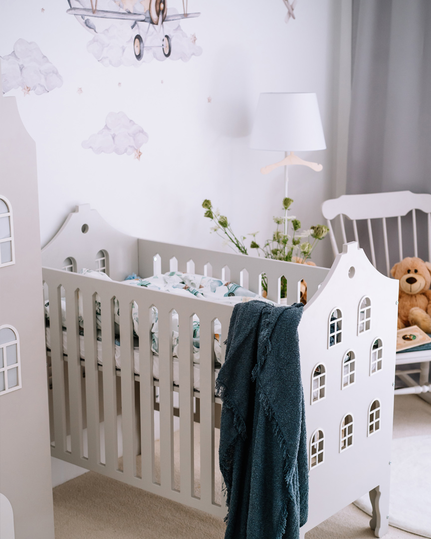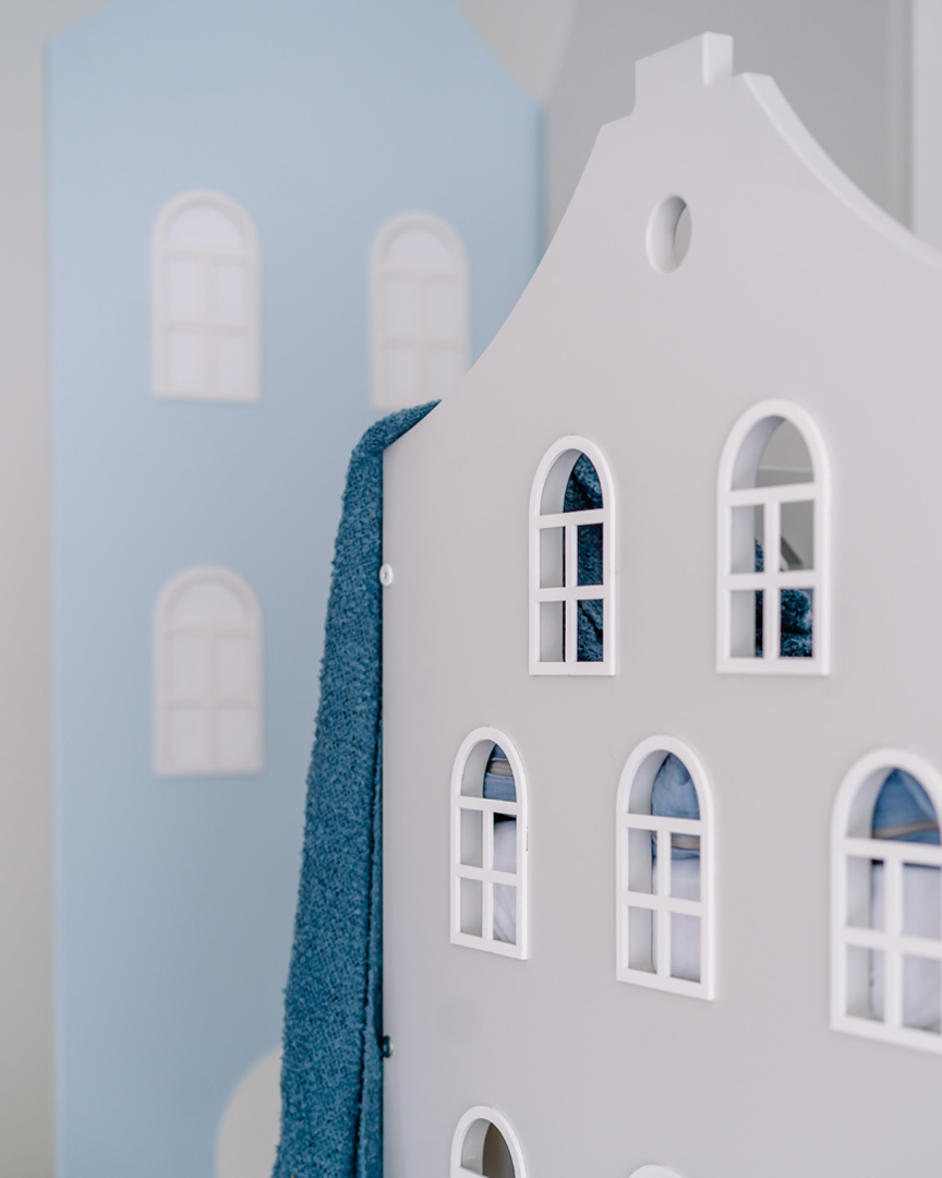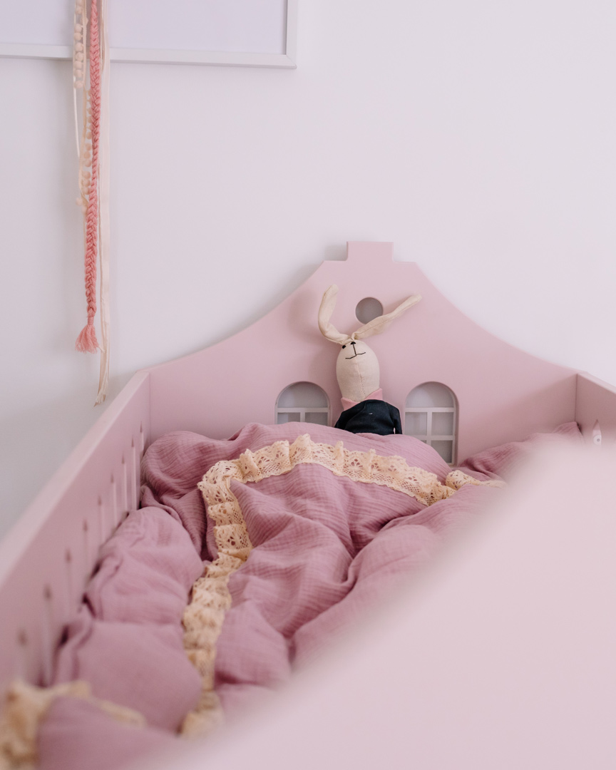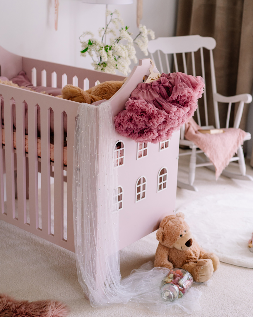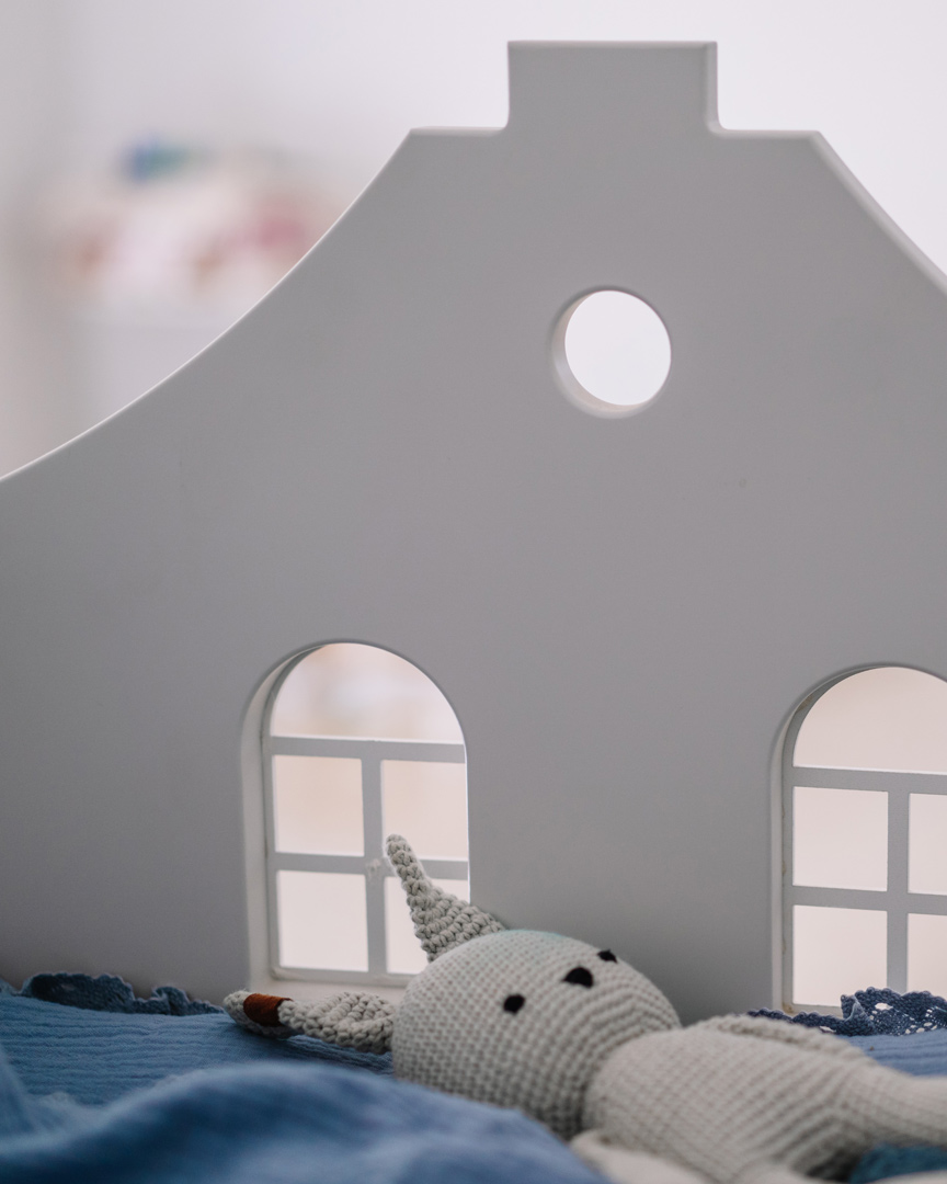 Dieses schöne Kinderbett in Hausform, hergestellt aus umweltfreundlichem MDF und sicherem Kiefernholz, bietet drei verstellbare Höhen, um sich dem Wachstum des Kindes anzupassen. Es verleiht dem Zimmer eine märchenhafte Note und regt die Fantasie des Kindes an, erhältlich in fünf Pastellfarben.