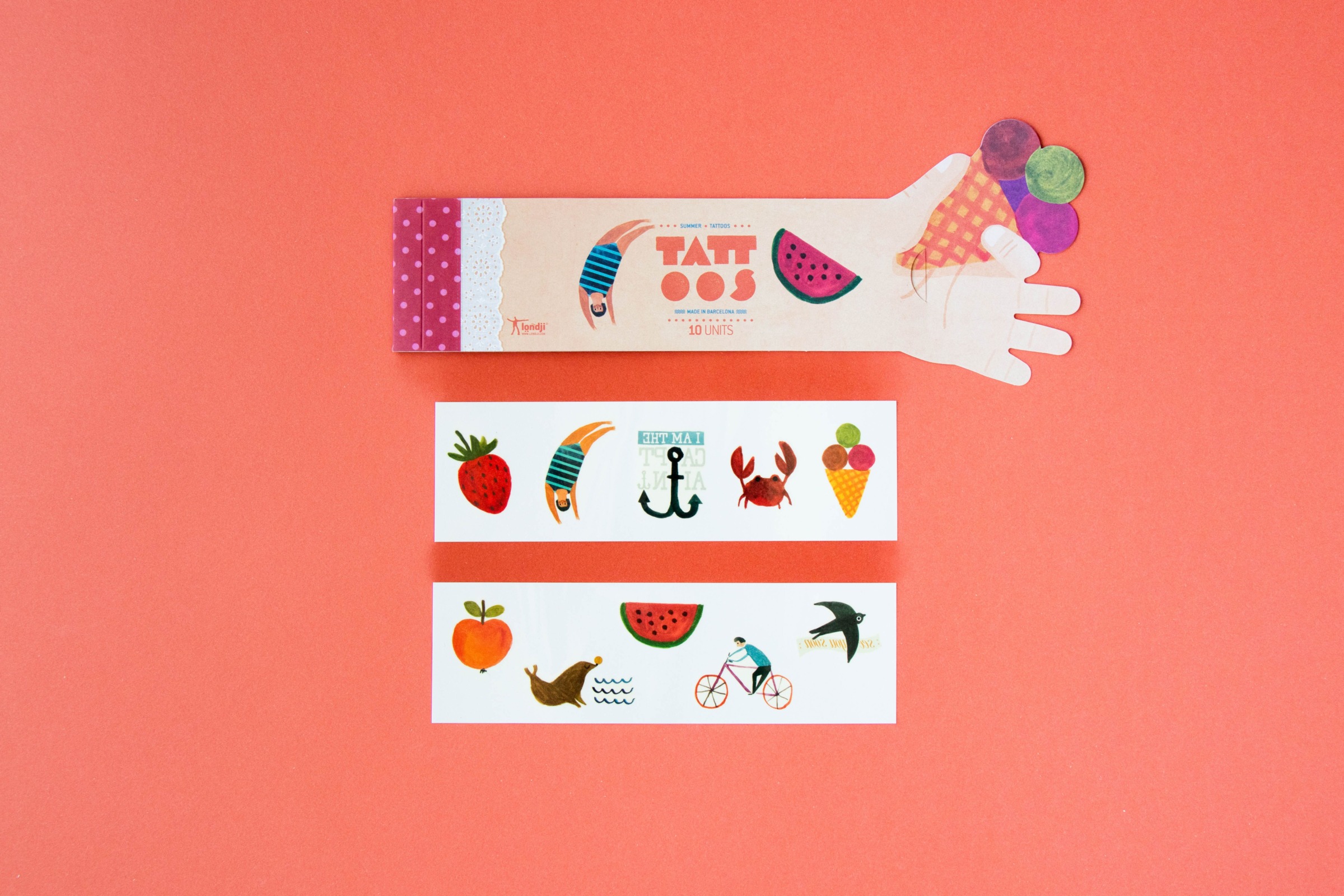 Jungs und Mädchen, wir freuen uns, Ihnen Londjis erfrischende Sommer-Tattoos vorstellen zu dürfen! Frisches Obst, Eiscreme und das Meer werden uns während der heißesten Jahreszeit beleben. Sie sind sicher, ungiftig und lokal produziert.