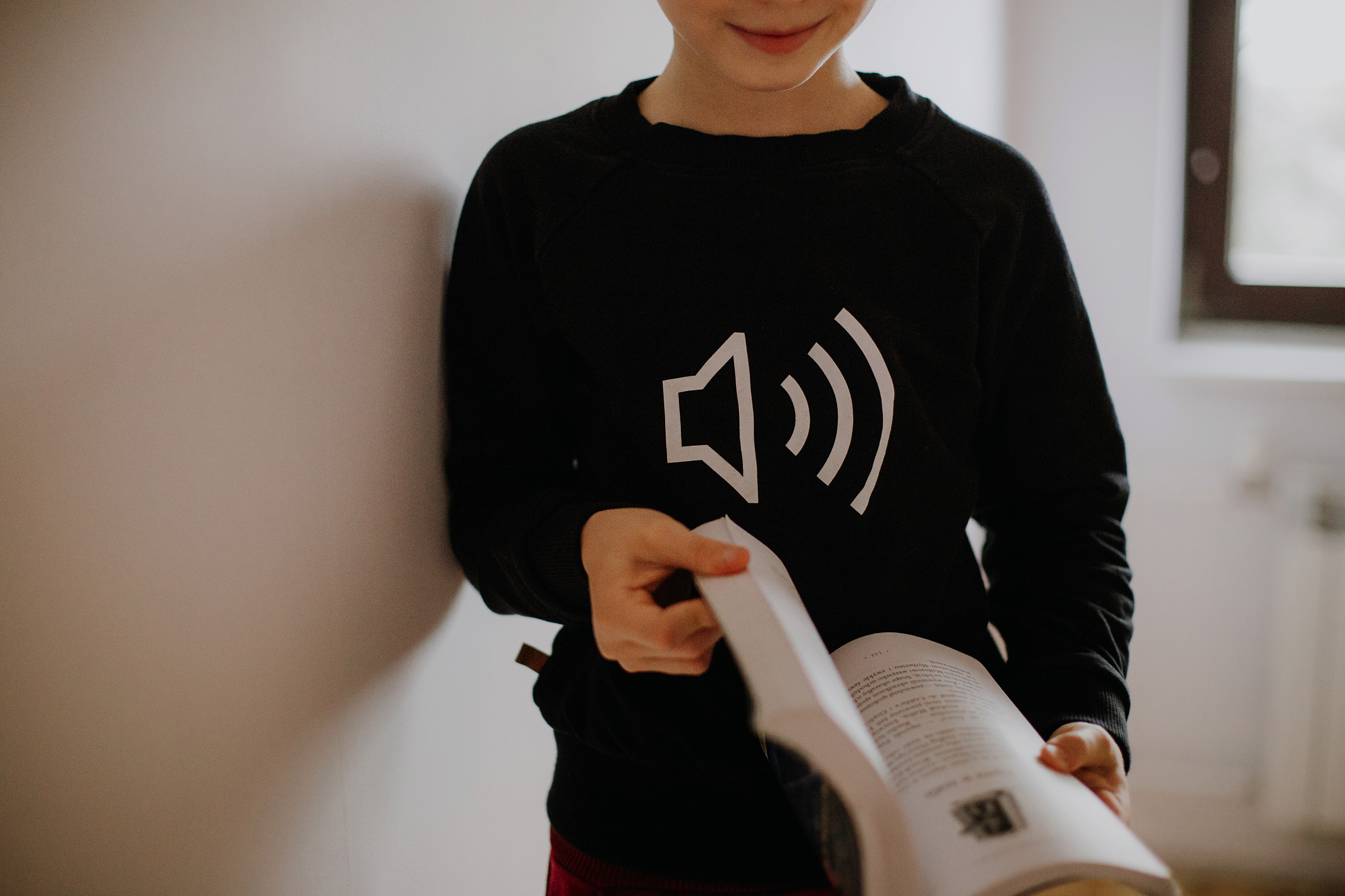 A relaxed fit cotton sweatshirt, funny to wear with sound on/off print.